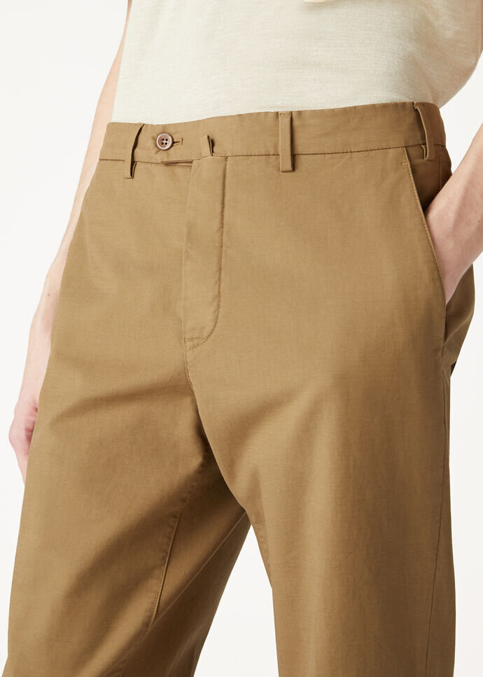Ultra-soft cotton pants with a touch of stretch. Flat fronted and garment dyed, for an impeccable finished look. Team this versatile casual staple with a jacket or outerwear for contemporary outfits with effortless polish.