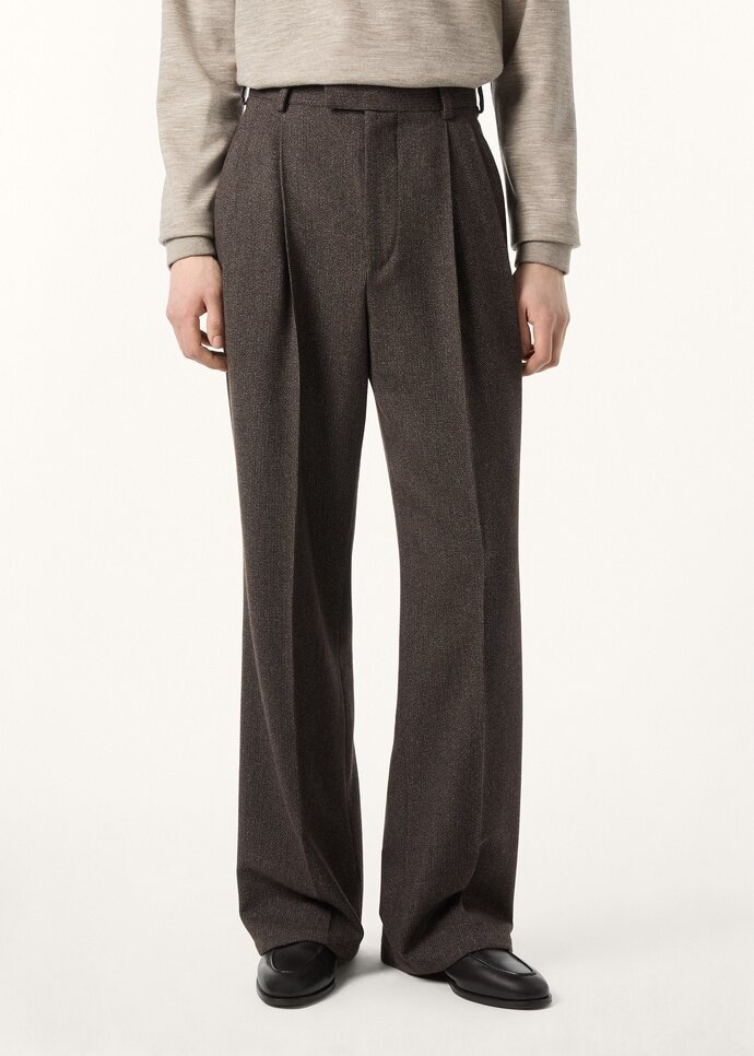 Tailored with a clean double pleat and a wide leg, the Hubert pants imbue classic tailoring codes with a sense of ease. They are cut from Wish® wool with hints of cashmere, worked to evoke the elegance of classic Cheviot cloths. Traditional finishes like pressed creases and an extended tab closure complete the silhouette with polish.