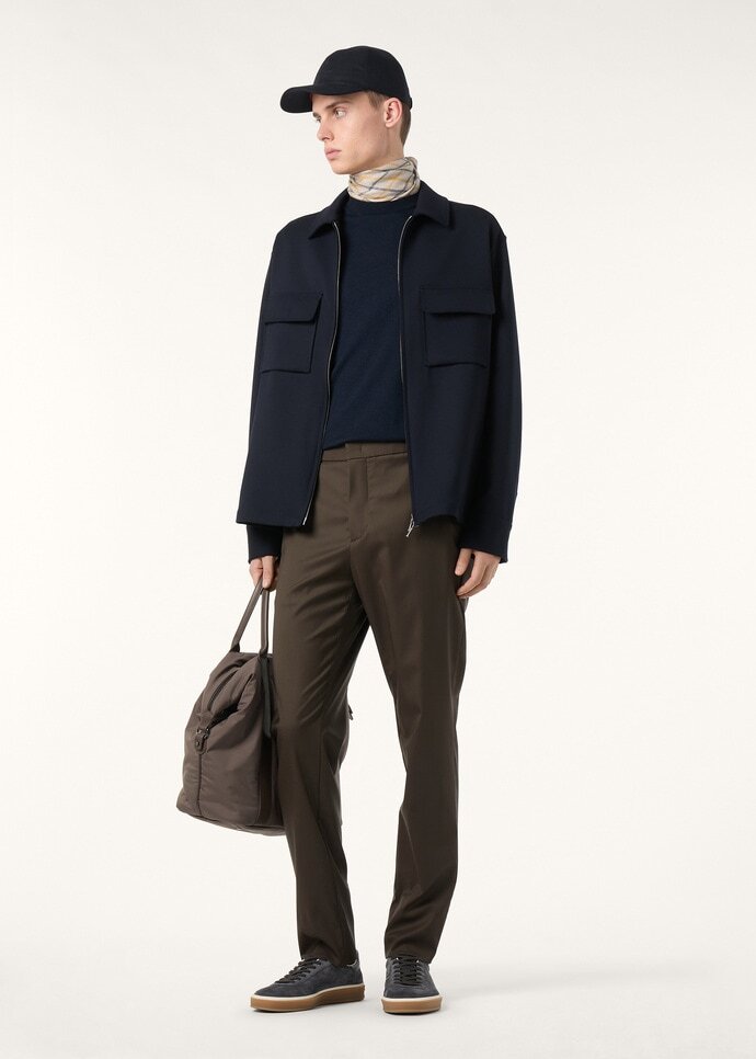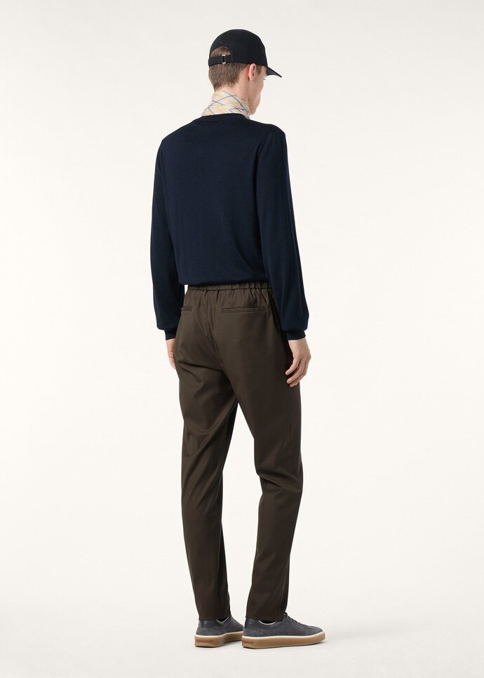 With their original, stylish cut, these Leisure City pants showcase Loro Piana’s advanced fabrics and renowned understated flair for design. Crafted from an innovative mix of wool, nylon and silk stretch fabric, they are delightfully soft to the touch and adapt to changes in temperature for optimal comfort. The discreet elasticated waistband with adjustable drawstring optimizes freedom of movement, making them perfect for casual wear during the cooler months.