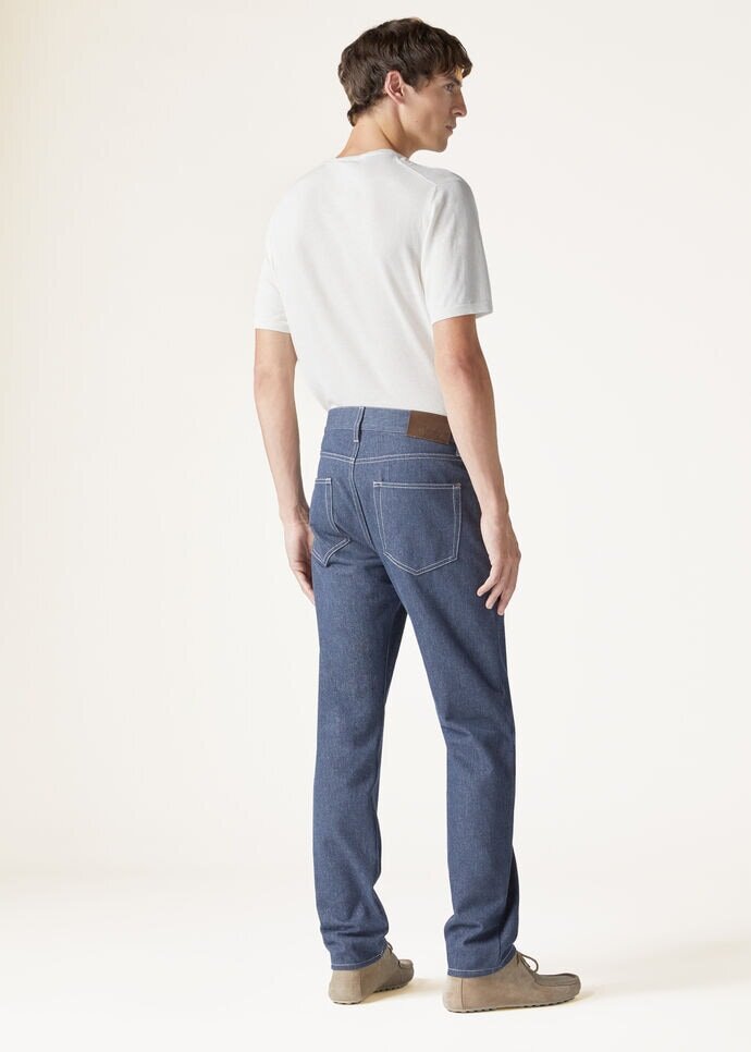 Classic five-pocket pants with a regular fit and classic design are complemented by the use of new organic cotton, celebrated for the length and strength of its fibers. Using time-honored techniques, Loro Piana creates a compact denim that is not only hard-wearing but also exquisitely soft to the touch. Bring out the best of your wardrobe with these pants – crafted with care for the perfect blend of durability and luxury.
