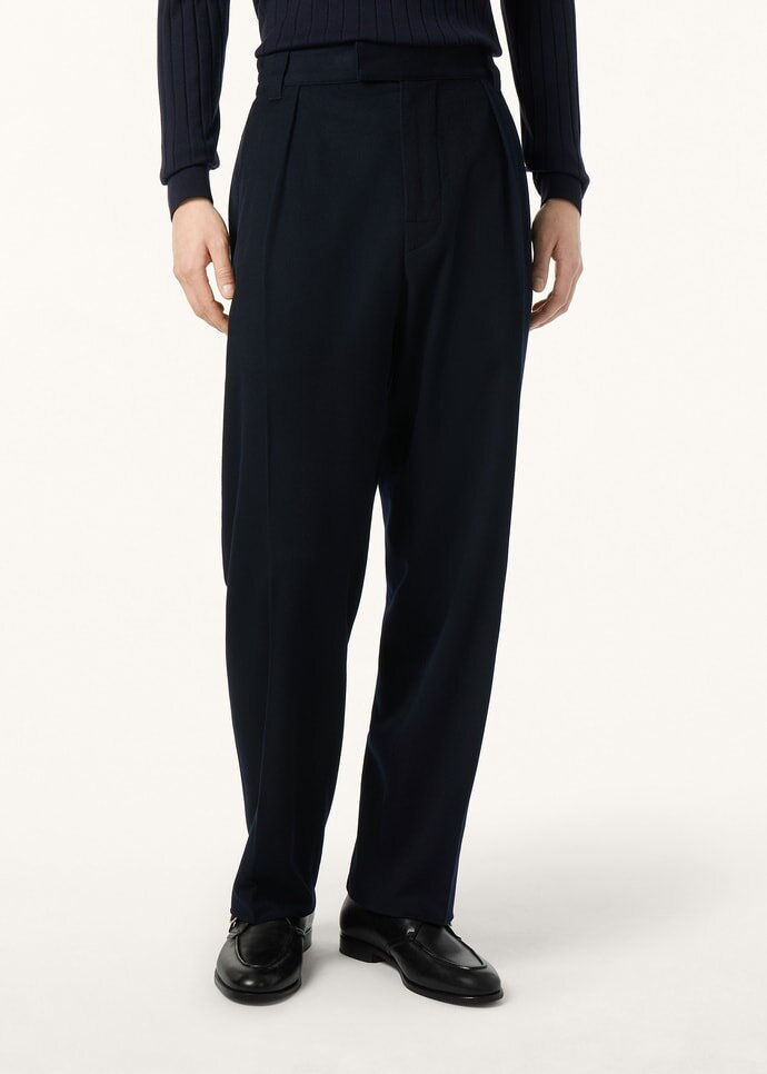 Melding ease, effortlessness, and elegance, the Reinga pants present a signature Loro Piana take on transitional tailoring. They are crafted from precious vicuña with hints of silk for a soft, lustrous finish. The waistband features a concealed fastening at the front and half-elasticated panel at the back in a perfect balance of comfort and style.