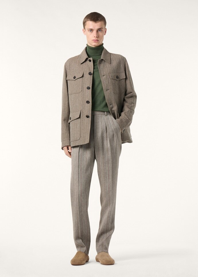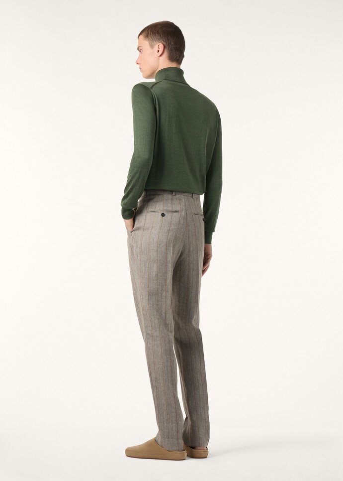 Tailored for structured ease, these Stafford pants are cut from twisted linen yarns with a striped pattern. In the hands of Solbiati’s expert artisans, the fabric is worked for an extremely soft hand and a refined matte look. Complete with a preformed waistband and pressed creases, the silhouette casts a balanced formal line.