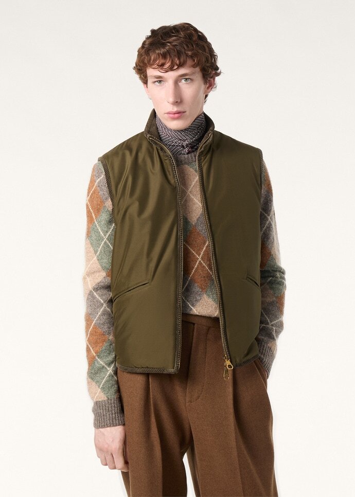 A versatile essential for all seasons, the Randy vest blends practicality with refined comfort within the Loro Highlands Capsule collection. It features a Silk Tech Storm System® exterior – a luminous silk fabric sealed with a weather-resistant membrane – and a sumptuous wool and cashmere cloth interior patterned with a tartan check. Shaped with a standing collar, it is edged with soft corduroy along the collar and hem.