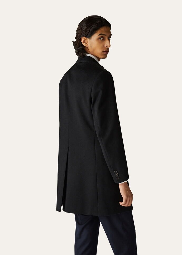 Classic coat made from soft, warm cashmere. Thanks to a special Storm System® treatment, it is water-repellent and wind-resistant. Its tailored appeal and Loro Piana’s artisan approach come together in a versatile leisure style that’s perfect for the city.