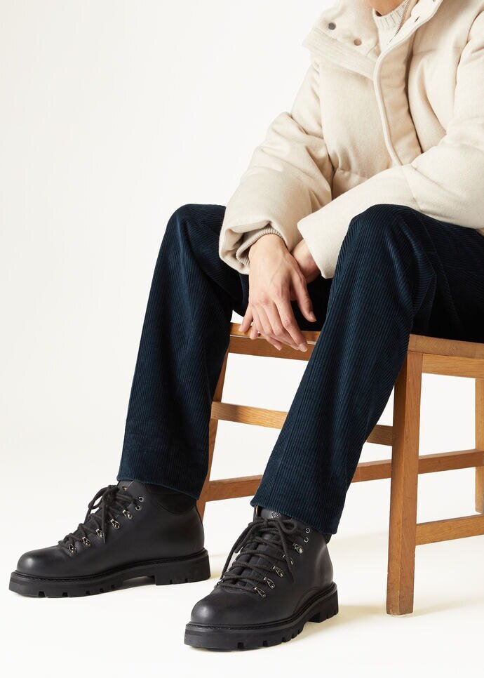 These mid-cut ankle boots combine city style with mountain performance. The ultra-soft full grain calfskin construction is accented by a padded suede collar and rain-resistant treatment. The plush shearling lining promises exceptional warmth, while the rubber sole with micro-EVA midsole and Norwegian-style leather welt stitching offers superior traction.