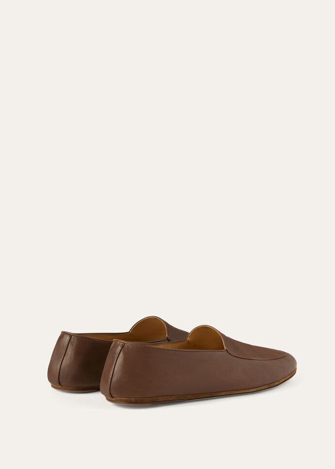 Our slipper-style loafer is lovingly crafted from the sumptuously soft nappa leather of lambskin. As you slip your feet into these exquisite shoes, you’ll revel in the buttery texture and supple flexibility. A simple fold at the back makes the transition from day to night effortless, transforming them into stylish slippers for cozy evenings at home.