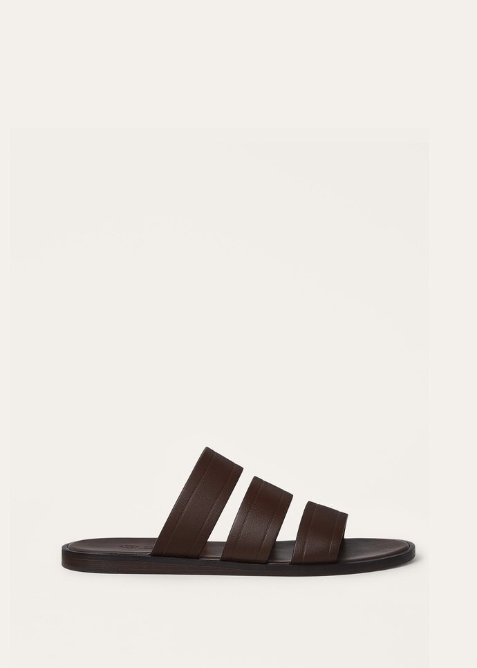 Intertwining bands of smooth calfskin form these sleek sandals, delicately embossed for a touch of modern depth. Smooth and light yet substantial, the leather balances contemporary appeal with time-honored quality. From every angle, meticulous craftsmanship is evident in the raised and polished finishes.