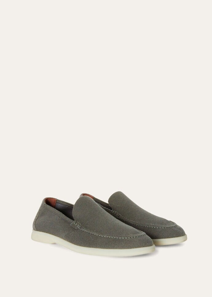 Loro Piana loafers made from knit Wish® wool. Prior to being joined to their rubber soles, the uppers are crafted on a loom — just like a sweater. They are defined by a water-repellent Rain System® treatment and sophisticated suede details.