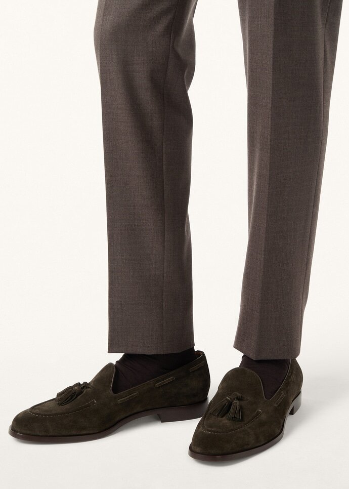 A timeless interpretation of a classic design, the Serge Walk loafer is characterized by its tapered line and matching leather tassel. It comes in calfskin suede, known for its supple touch and firm structure that refines the sculpted form. The discreetly heeled silhouette reveals a meticulously woven instep, in a refined showcase of the Maison’s artistry.