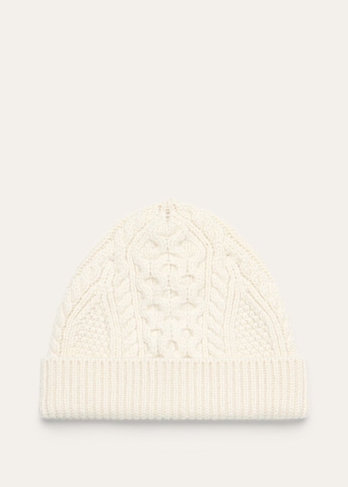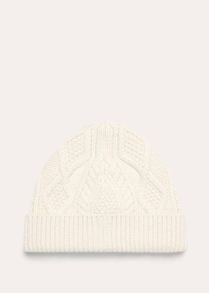 The Eyre beanie is traced with a sculpted cable and diamond motif to add an elegant dimension. Knitted in sumptuously soft baby cashmere, it guarantees ultimate warmth and lightness as the temperatures shift. A ribbed border lends a touch of interest to the otherwise minimal design.