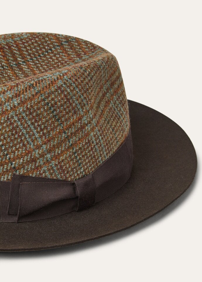 Steeped in the Maison’s heritage, the Sergio hat is a classic fedora style inspired by a model worn by Sergio Loro Piana. Its brim is made from velvety-soft rabbit fur and baby cashmere using complex artistry. For subtle contrast, the crown is overlaid with a checked fabric evocative of Shetland cloths.