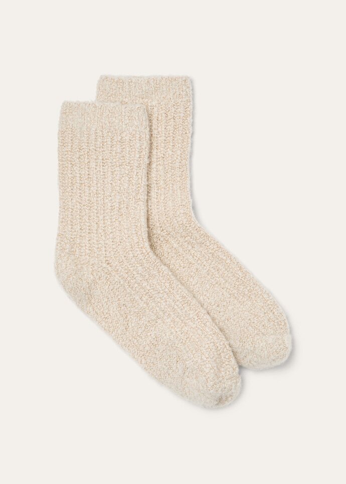 Primed for moments of repose, these socks from the Cocooning selection are worked with a half fisherman’s rib construction for refined tactility. They come in the House’s redeveloped AirCash fabric, now fused with touches of gilded Eri silk for a hint of luster.
