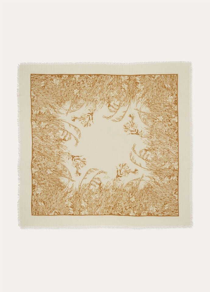 The Campo di Lino Fiorito shawl reflects the Maison’s rich heritage, beautifully complementing any ensemble with understated finesse. Crafted from refined and lightweight cashmere silk, it’s adorned with an enchanting floral motif that captures the enchanting magic of a sunrise and an invigorating summer breeze, depicting a joyful dance of stems and leaves in sinuous motion. The delicate petals, punctuated by clean and intricate lines, merge into an exquisite contrast of shades.