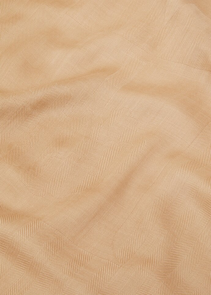Timelessly classic, this stole makes for a refined accent to transitional ensembles. It is worked on the loom from pure cashmere yarns and reveals a subtle herringbone pattern and the Maison’s iconic crest motif. Short fringes run along all four sides, producing a hint of movement.