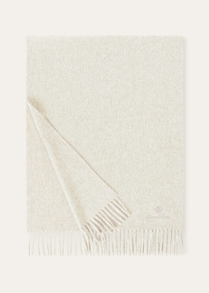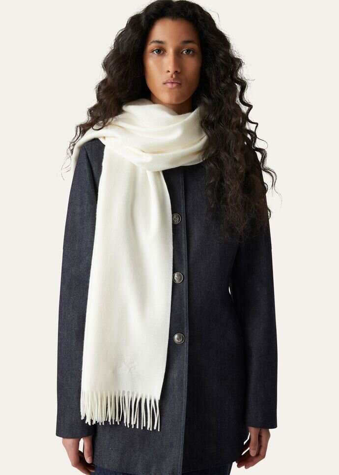 Classic cashmere stole with exclusive Loro Piana “frisson” finish, which gives the fabric sheen and adds luminosity to the colours. Ideal worn as a wide scarf wrapped softly round the neck or as a shrug.