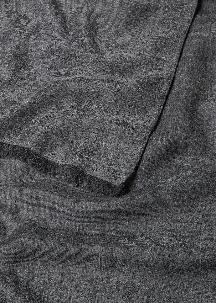 Balancing versatility with sophisticated style, the Punjab stole is an ode to the ancient art of Indian tapestry. In a gossamer and near-translucent blend of cashmere and silk, it is decked with the Loro Piana Punjab motif, screen-printed with paisleys and intricate florals in a kaleidoscope of color and pattern.
