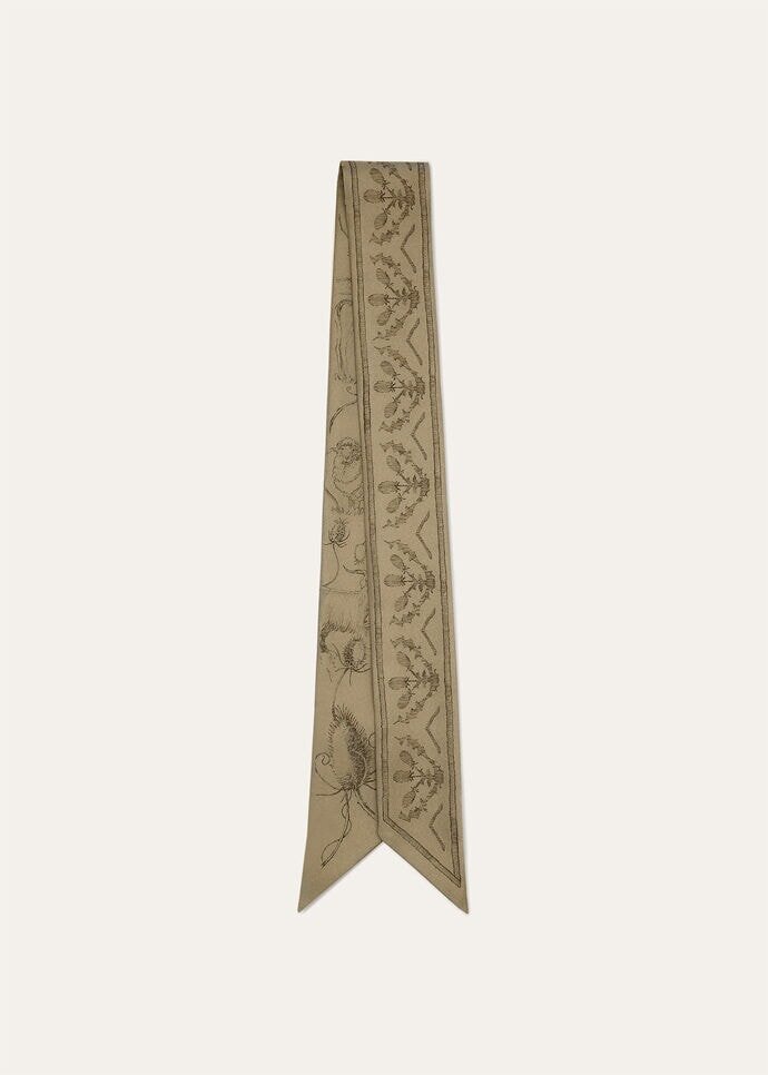 The Le Origini delle Eccellenze tie band reflects Loro Piana’s rich heritage, beautifully complementing any ensemble with understated finesse. Crafted in elegant silk twill, it’s decorated with a motif inspired by a commemorative print, which invites the wearer to retrace the Maison’s history with thistle flowers and animals from the Loro Piana legacy. The perfect choice for those who appreciate rich heritage and exquisite craftsmanship.
