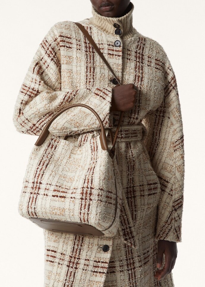 Inspired by Loro Piana’s cashmere bales – bundles of precious raw fiber – the Bale bag is a sophisticated bucket style steeped in the Maison’s rich textile legacy. With its sensorial touch, unique lightness, and seamless finish, this large edition is primed for everyday elegance and can be carried in the hand or over the shoulder. It is crafted from tactile Check Tweed with hand-stitched handles and a signature toggle fastening.