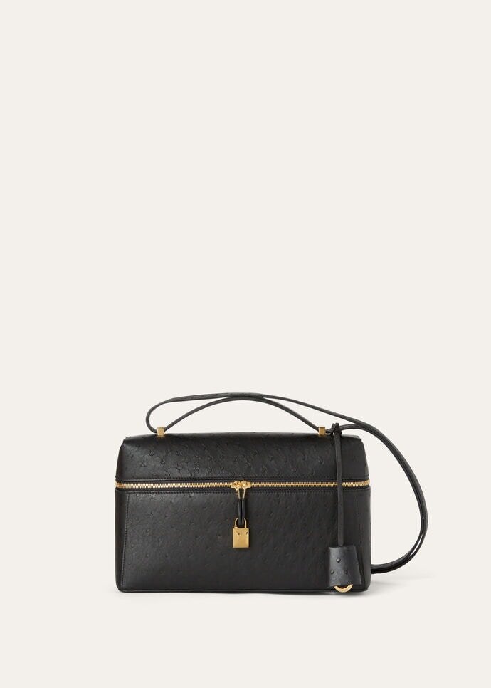 A sophisticated iteration of the Extra Pocket, crafted in ostrich leather. The immaculately crafted leather has been treated with an exclusive new finish that gives it a subtle and sophisticated sheen. This special treatment not only enhances its beauty but also makes it irresistibly soft to the touch. With a more modern and fresh look, it features the new, redesigned Loro Piana charms – now three-dimensional, removable, exquisite and feminine. The versatile two-way strap allows the bag to be carried over the shoulder, across the body or elegantly in the hand.