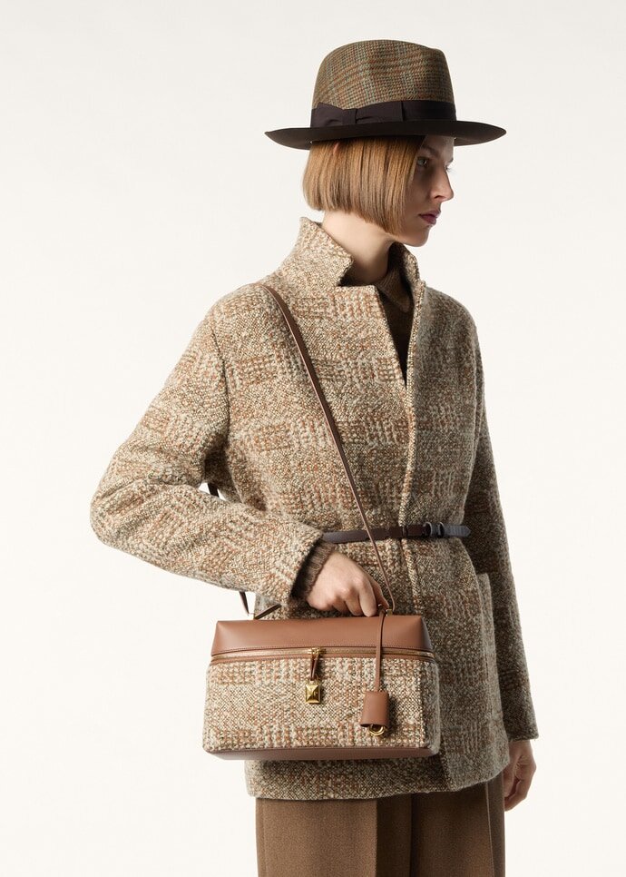 An elegant accessory with compact proportions, the Extra Bag L27 combines timeless style with functionality. Primed for special occasions and everyday elegance alike, it is rendered in Norfolk Tweed, a vintage-inspired textured wool blend. Suspended from the double-zip closure are Loro Piana’s iconic charms, framed by a refined leather key holder.
