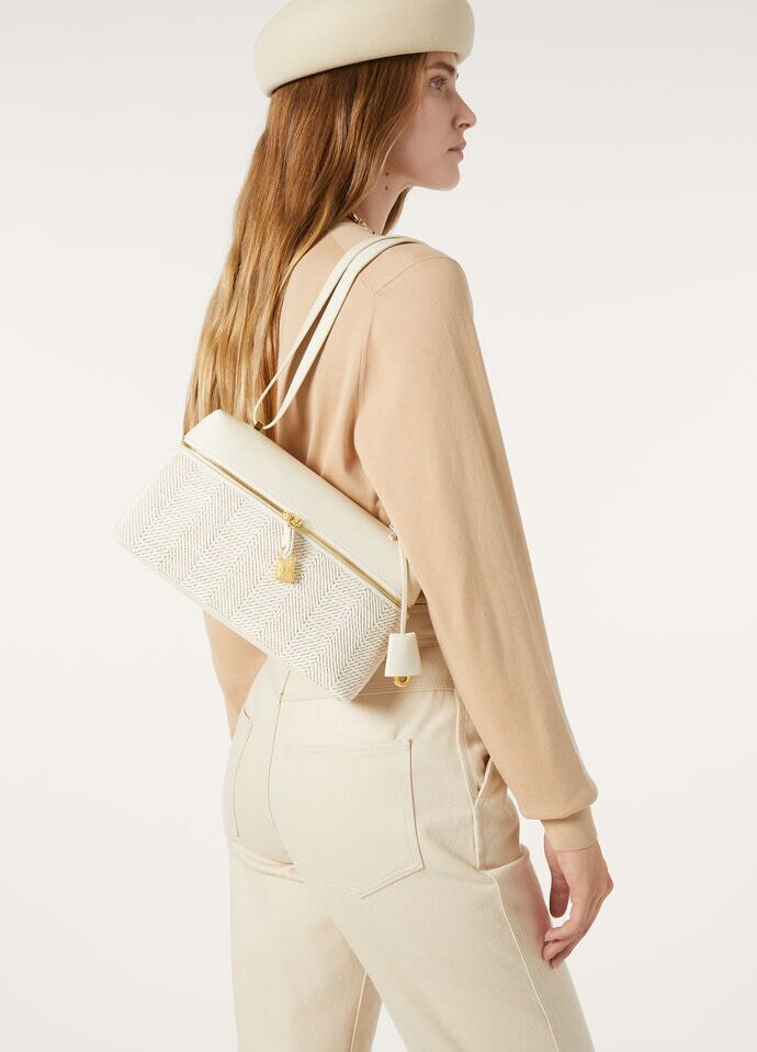 The Extra Bag, an elegant sculptural shape that combines modernity with functionality. Made of crocheted linen blend, it features three-dimensional charms and distinct details. Designed to go from day to evening, in town or traveling, combining exclusive materials, a graceful shape, craftsmanship and functionality. The bag can be carried over the shoulder and crossbody.