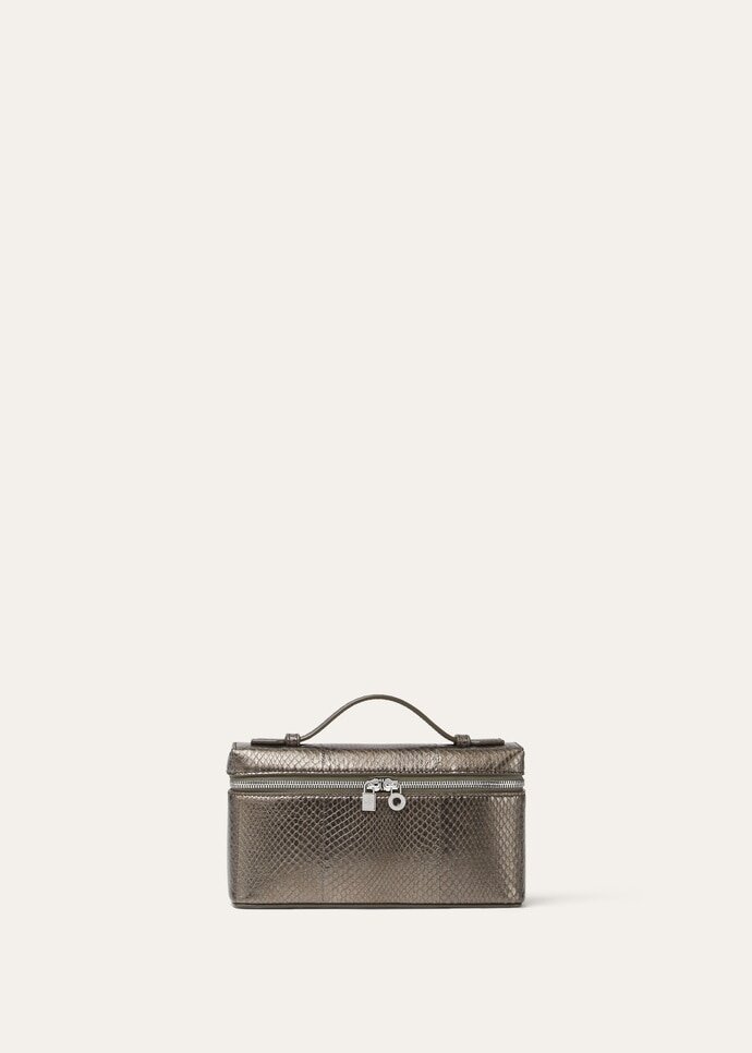 Versatile and endlessly refined, the Extra Pocket L19 is a quintessential Loro Piana pouch with timeless charm. It is crafted from exclusive snakeskin, coated with a near-imperceptible metallic film for a touch of embellishment. The petite accessory can be carried crossbody or in hand, with the shoulder strap removed.