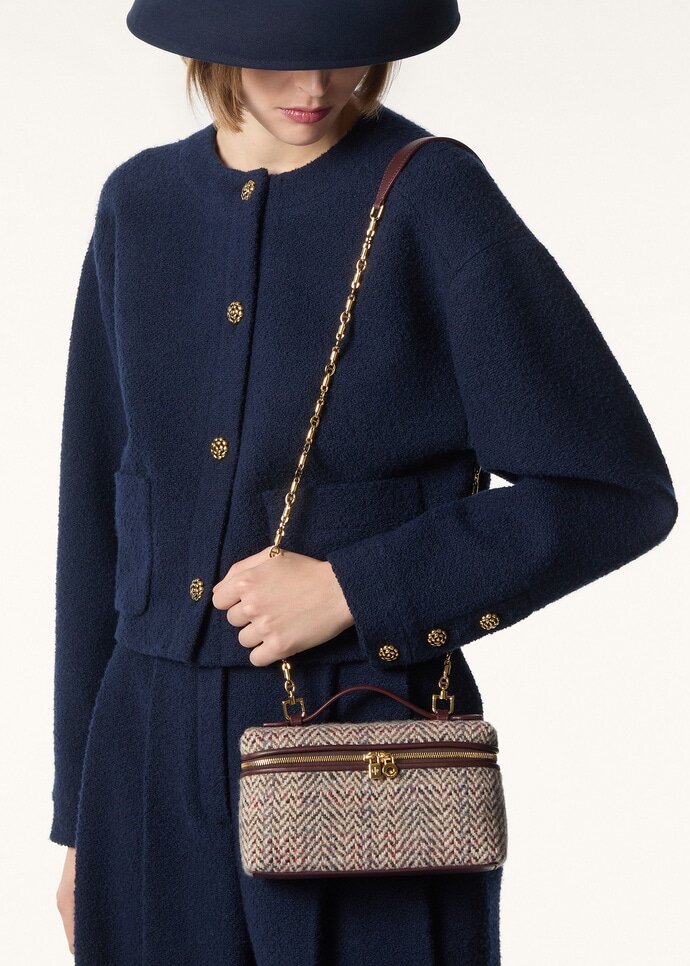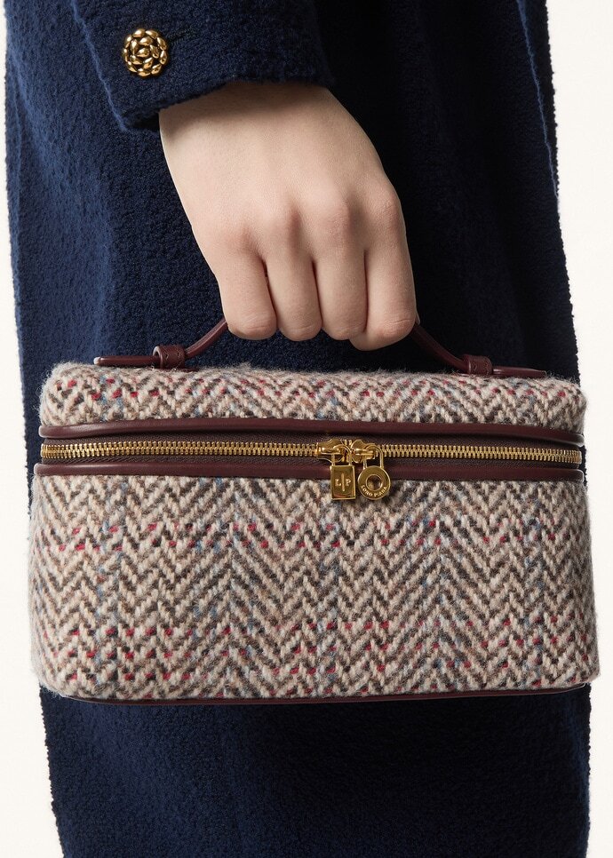 Versatile and endlessly refined, the Extra Pocket L19 is a quintessential Loro Piana pouch with timeless charm. It is crafted from cashmere and wool tweed with a sophisticated herringbone weave. The petite accessory can be carried crossbody or in hand, with the chain strap removed.