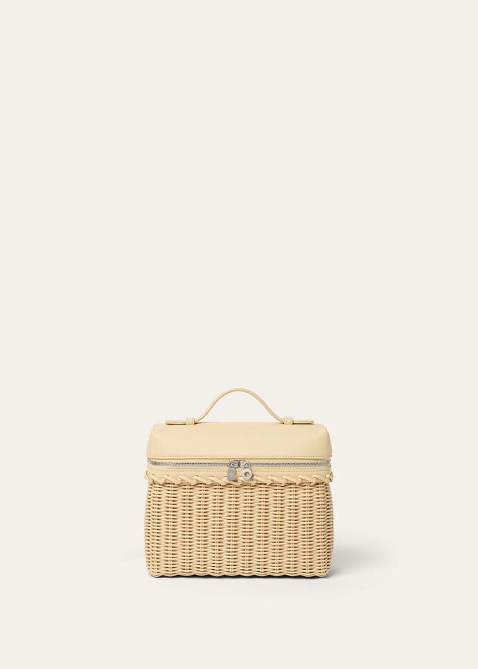 The iconic Extra Pocket, the quintessential Loro Piana pouch. Versatile and contemporary, modern and effortless, the Extra Pocket can be carried by hand or crossbody thanks to its removable strap. It is made from wicker, a luxury material dating back to ancient times, that is obtained from the heart of the plant and handcrafted on a loom by expert artisans using historic weaving techniques. The calfskin details are exceptionally soft, thanks to meticulously selected materials and exclusive techniques used for tanning, dying and finishing, evoking the glove-making tradition.