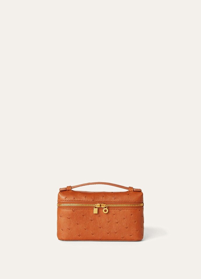 Inspired by the iconic shape of the Extra Pocket, this contemporary mini pouch with zip is crafted in prized ostrich leather for everyday storage that’s both luxurious and practical. Its interior cardholder holds cards securely with added protection. Finished with a removable wrist strap, Loro Piana’s renowned craftsmanship ensures that the fine leather will only improve with time.