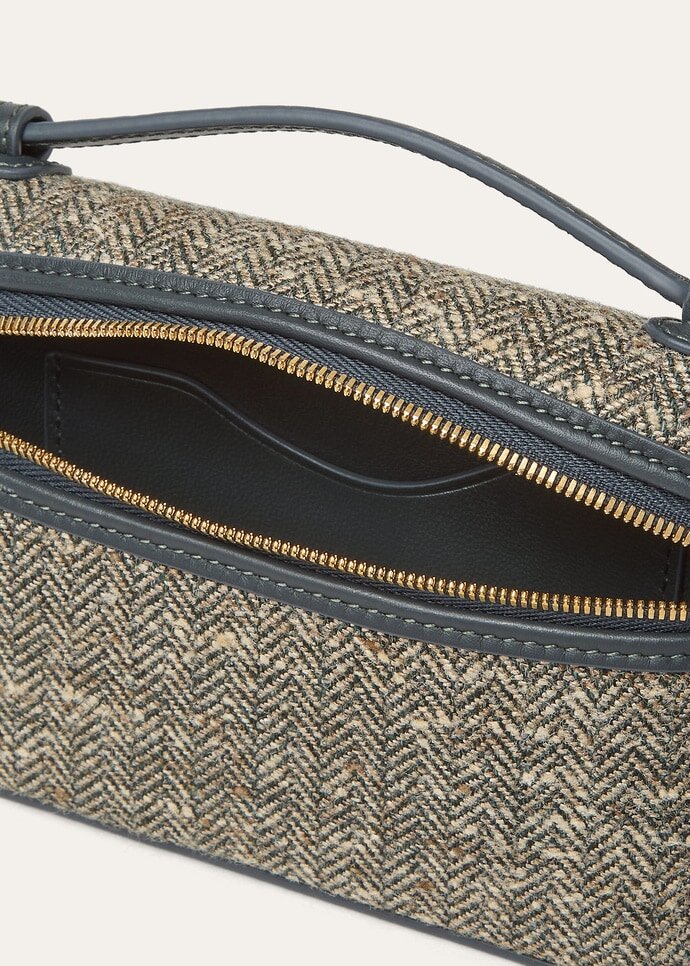 Versatile and endlessly refined, the Extra Pocket is a quintessential Loro Piana pouch with timeless charm. Here interpreted in a mini size, it is crafted from refined tweed fused with wool, silk, and linen for a tactile finish. The petite accessory can be carried crossbody or in hand, with the chain strap removed.