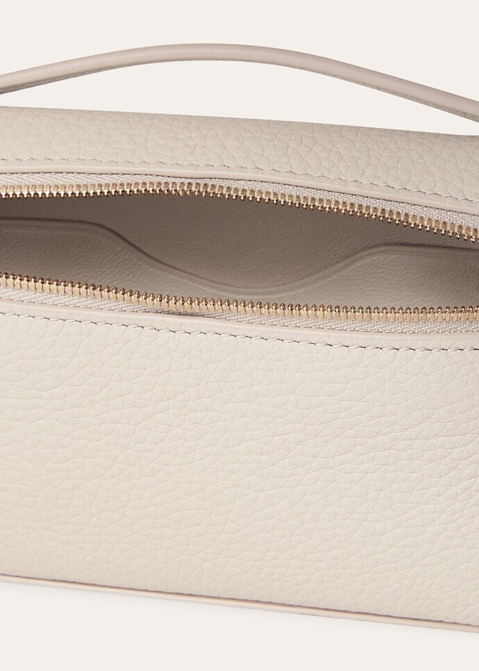 Inspired by the iconic shape of the Extra Pocket, this contemporary mini pouch with zip is crafted in sumptuous tumbled calfskin for everyday storage that’s both luxurious and practical. Its interior cardholder holds cards securely with added protection. Finished with a removable wrist strap, Loro Piana’s renowned craftsmanship ensures that the fine leather will only improve with time.