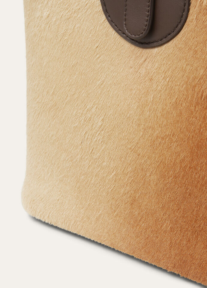 The refined Bobbin bucket bag, with its adjustable leather top handle, takes its name from the spool that holds the thread or yarn and is deeply rooted in the world of textile manufacturing and the rich heritage of Loro Piana. The bag’s understated elegance and timeless design make it a versatile accessory that effortlessly complements any outfit, whether slung over the shoulder or carried by hand. Crafted from cavallino calfskin with a distinctive luster, its spacious interior offers ample room for essentials while maintaining a sleek silhouette. The bag comes with an internal drawstring pouch in linen.