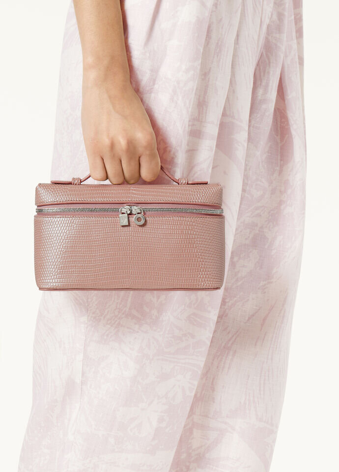 The iconic Extra Pocket, the quintessential Loro Piana pouch. Versatile and contemporary, modern and effortless, the Extra Pocket can be carried by hand or crossbody thanks to its removable strap. It is beautifully crafted in exquisite pearlescent lizard skin.