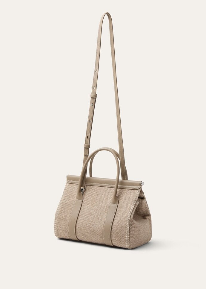 The Loom bag L25 pays homage to Loro Piana’s century-spanning heritage in fabrics and fibers – the metal bar beneath the flap evoking the gentle cascade of cloth draped across the textile loom. Crafted in Pecora Nera® with a distinctive chevron weave, it is anchored with a refined padlock that can be worn closed or open for a more relaxed look that retains its signature charm. The timeless accessory is ideal for carrying in hand or crossbody, offering ultimate versatility.