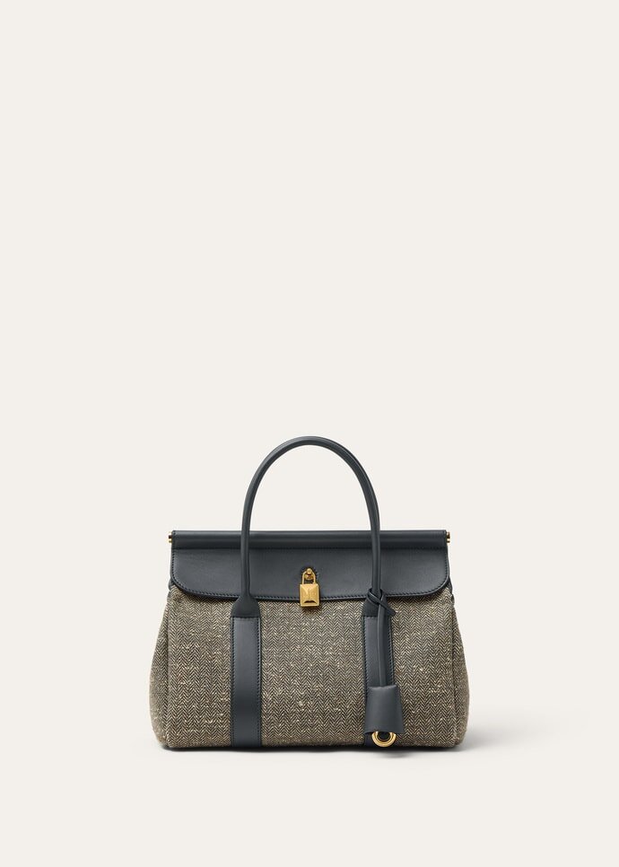 The Loom bag L25 pays homage to Loro Piana’s century-spanning heritage in fabrics and fibers – the metal bar beneath the flap evoking the gentle cascade of cloth draped across the textile loom. Crafted in wool, silk, and linen tweed, it is anchored with a refined padlock that can be worn closed or open for a more relaxed look that retains its signature charm. The timeless accessory is ideal for carrying in hand or crossbody, offering ultimate versatility.