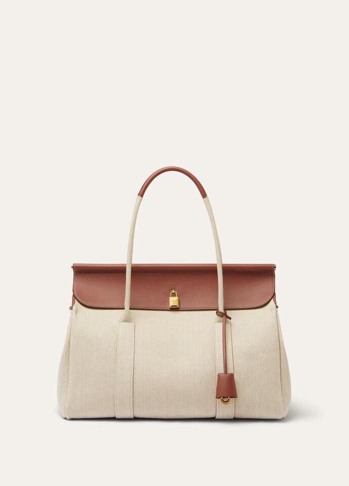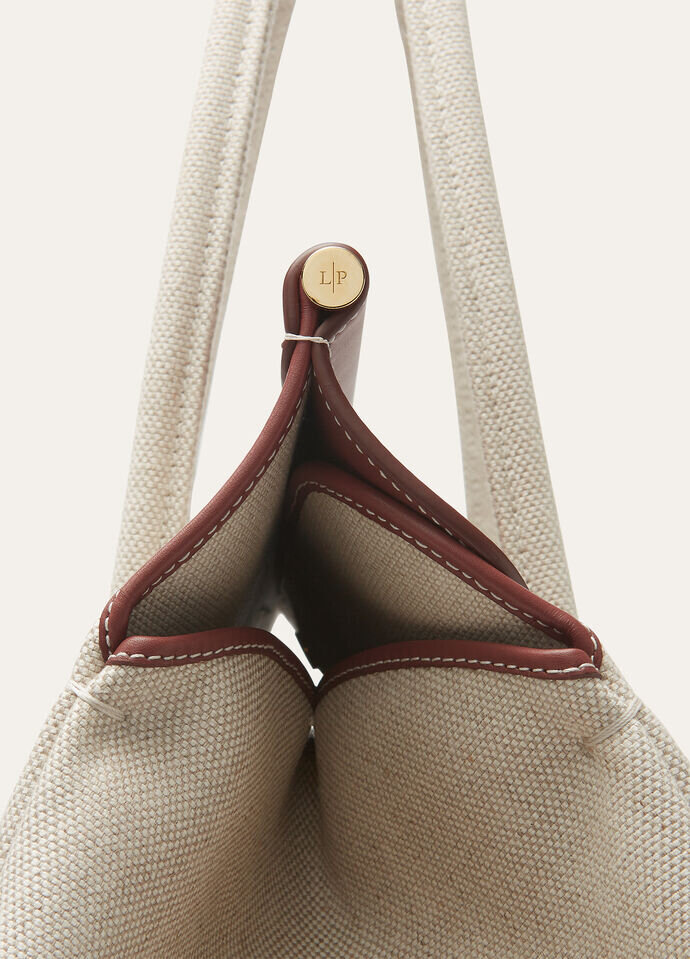 The Loom bag pays homage to Loro Piana’s centuries-old textile heritage, with the metal bar beneath the flap evoking the gentle cascade of fabric draped across an artisan’s loom – a subtle nod to the brand’s storied weaving techniques. Beautifully crafted in cotton and linen, the refined padlock that closes the bag can be unfastened, giving it a more relaxed look. Loom can be worn closed or open without losing charm and personality. Even when worn unfolded, the bag gracefully closes by itself.
