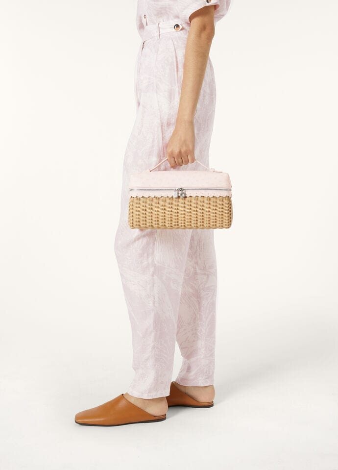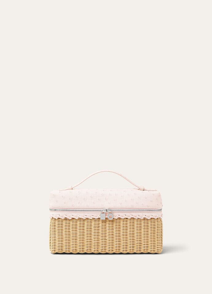 The iconic Extra Pocket, the quintessential Loro Piana pouch. Versatile and contemporary, modern and effortless, the Extra Pocket can be carried by hand or crossbody thanks to its removable strap. This bag is made of wicker and Ostrich, resulting in a sophisticated and one-of-a-kind accessory.