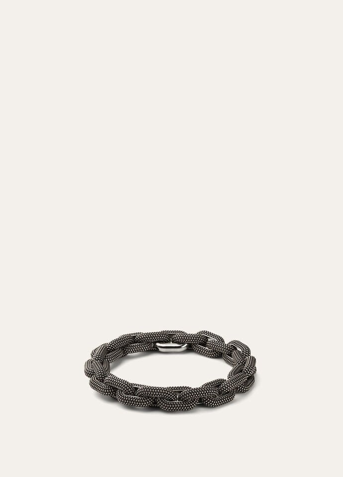The Bubble chain necklace weaves a narrative of quiet sophistication, its intricate details inviting contemplation. In a rhythmic dance of textures, the necklace cascades across the décolleté, its chain link construction adorned with pre-formed bubble-pressed plates that catch the light with every movement. This versatile piece effortlessly elevates both casual daywear and evening attire.