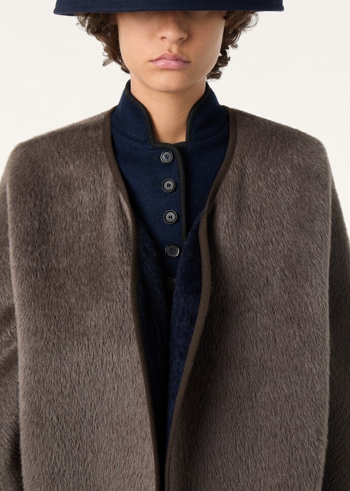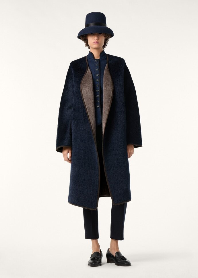 Cut in a reversible silhouette, the Linus coat is crafted from cozy alpaca with an element of wool for enveloping warmth. Easy and relaxed, it is framed with kimono-style sleeves and has a wide overlapping design. Cashmere-taped edges and a brooch in the form of a thistle at its round neckline complete the design on an heirloom note.