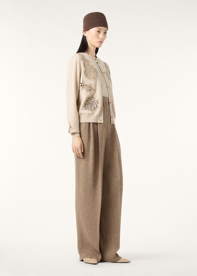 Timelessly versatile, the Classic crewneck cardigan is shaped with a close fit for an enveloping feel against the skin. It is rendered in precious baby cashmere – gathered only once from the soft underfleece of young Hircus goats – and adorned with thistle embroidery to add a signature embellishment. Ribbing along the cuffs and hem frame the piece on an understated final note.