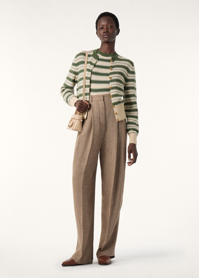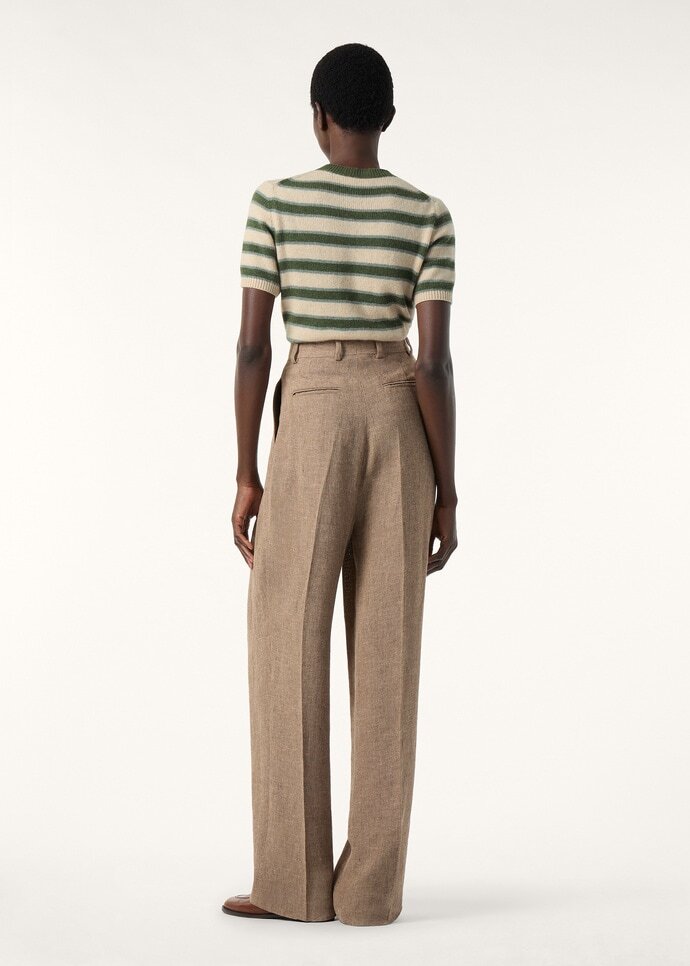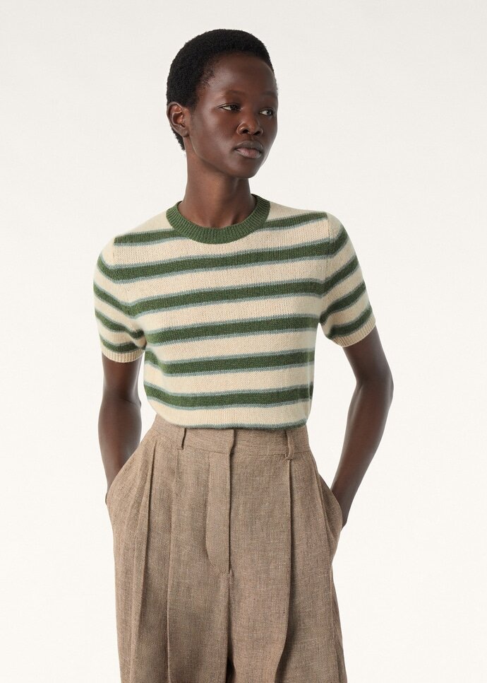 Woven with a subtle striped pattern, the short-sleeved Fobello crewneck is both timeless and modern. A refined fusion of softness, lightness and warmth, it is crafted from rare baby cashmere, garnered from the downy duvet of young Hircus goats which can only be combed once in their lifetime. Ribbed hems and cuffs frame the design with a neat finish.