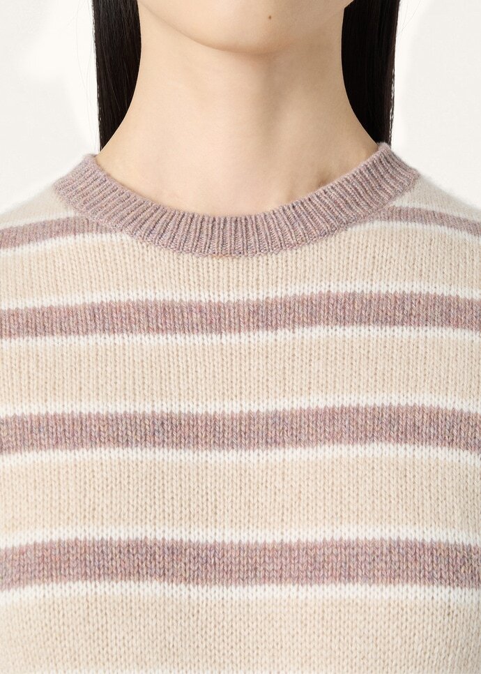 Woven with a subtle striped pattern, the short-sleeved Fobello crewneck is both timeless and modern. A refined fusion of softness, lightness and warmth, it is crafted from rare baby cashmere, garnered from the downy duvet of young Hircus goats which can only be combed once in their lifetime. Ribbed hems and cuffs frame the design with a neat finish.