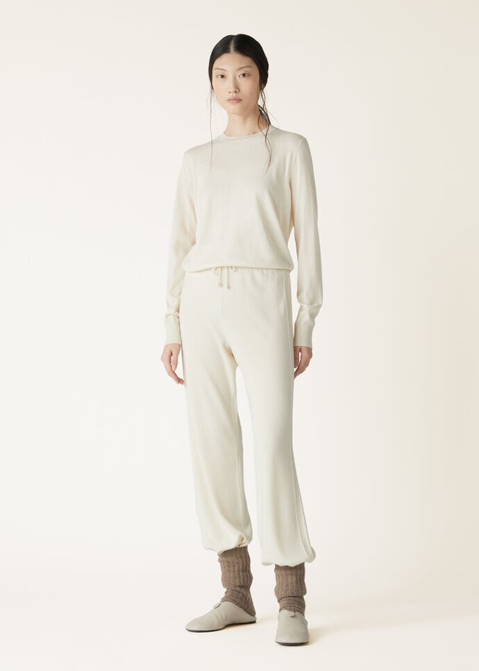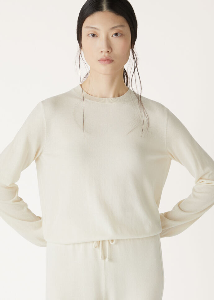 Spun from the first delicate downy tufts of the cashmere kid, Baby Cashmere is an exquisite rarity – ethereally soft, ultra-fine fibers that whisper of nature’s most precious gifts. Expertly crafted from this special yarn, this regular-fit crewneck sweater embodies refined lightness while providing enveloping warmth through its unique, featherweight construction. Presented in the fiber’s natural, undyed hue, it promises sublime, relaxed luxury.
