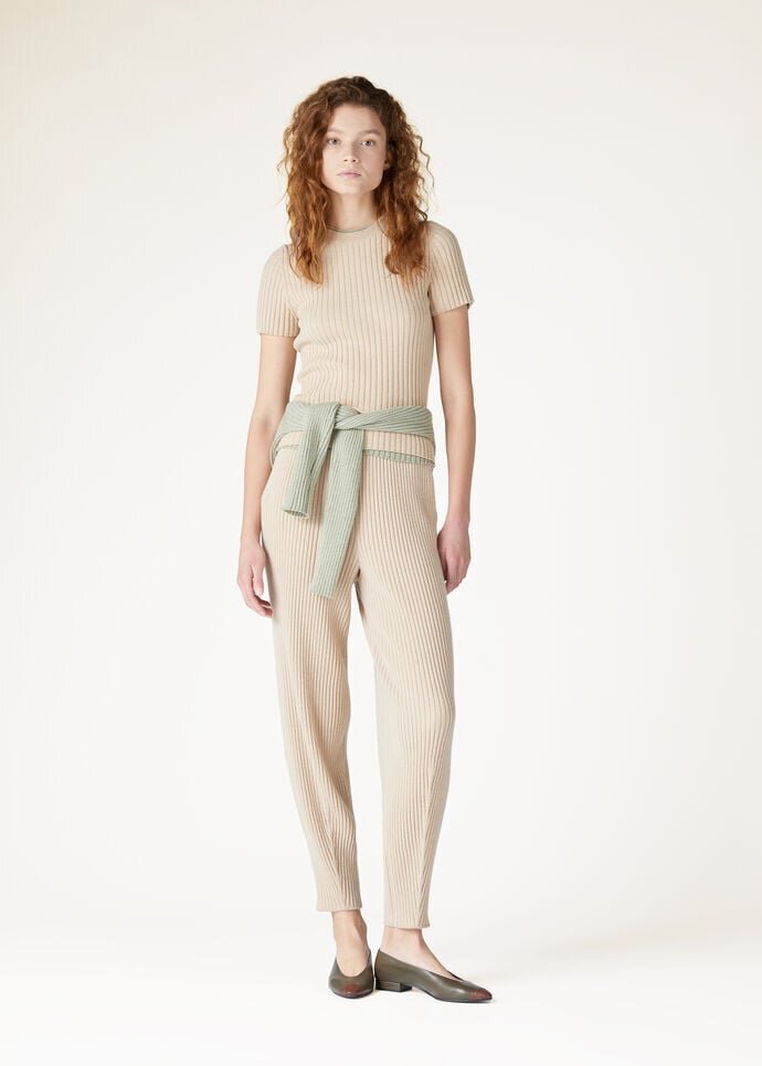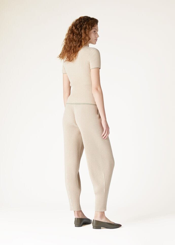The Lago Sirio short-sleeved crewneck celebrates the pristine beauty of the natural world – a world to be contemplated and cherished – and the sumptuous luxury of baby cashmere. Designed to enhance the natural properties of the fiber, the rare mélange shades are expertly crafted using extracts from bark, roots and petals. The ribbing not only adds texture but also enhances the yarn’s lightweight, super-soft feel, ensuring that this knit with its feminine, flattering cut is not only comfortable but also a refined expression of enduring elegance.