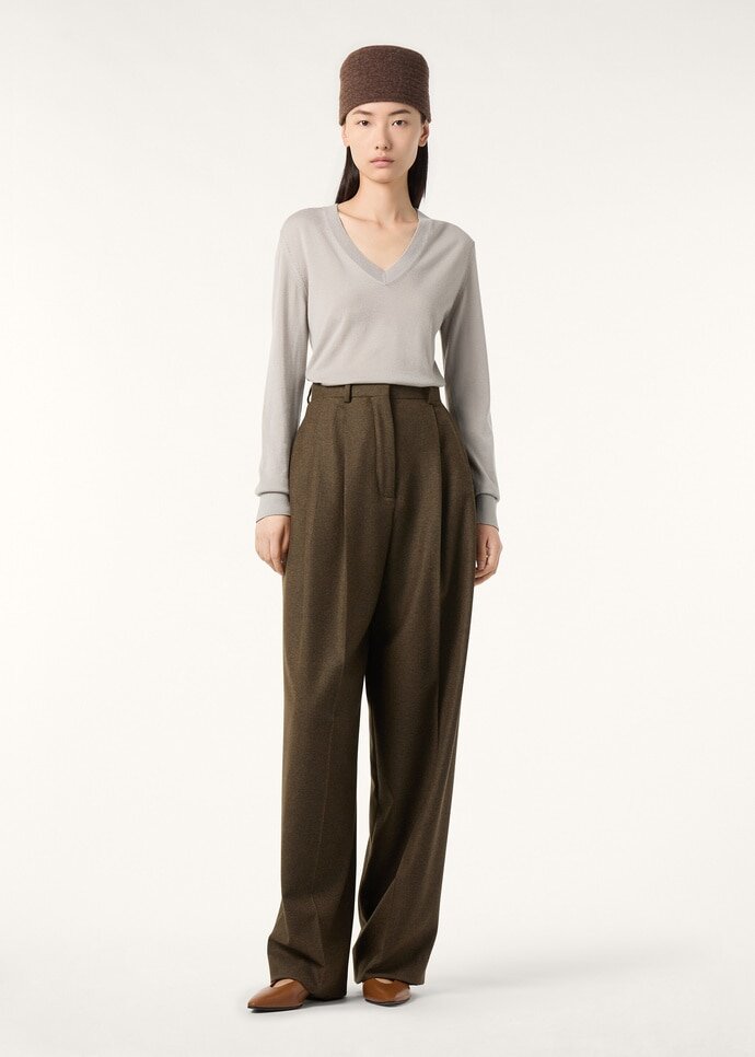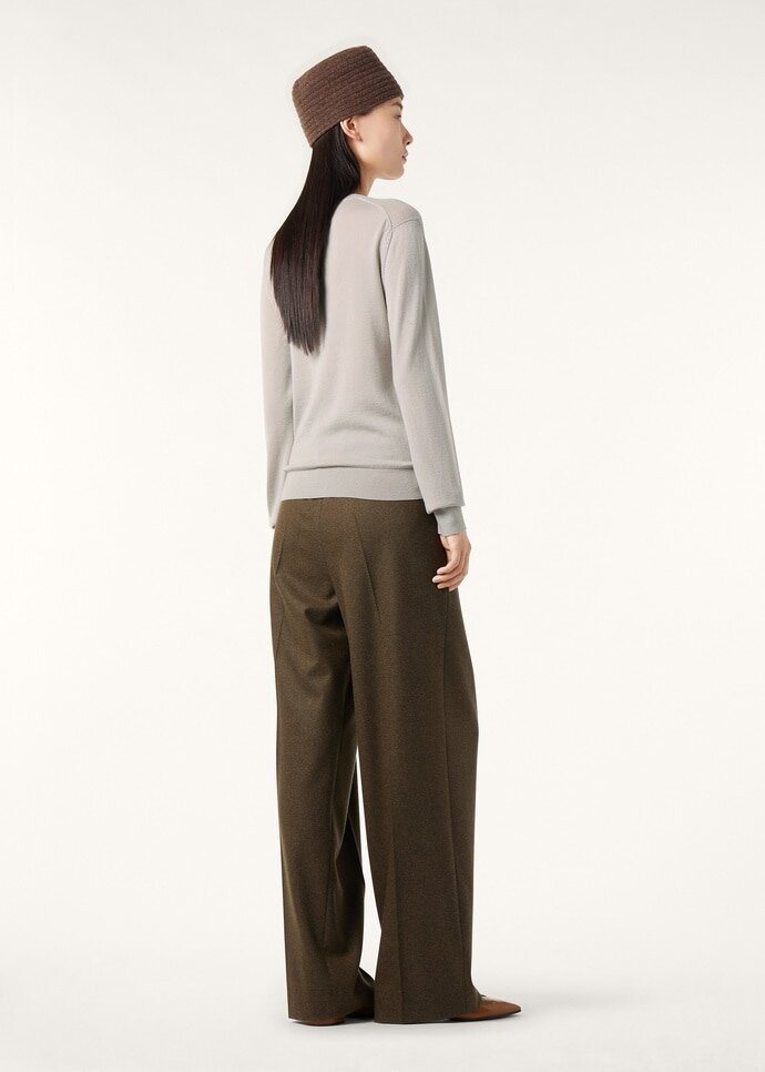V-neck sweater made from extremely lightweight, plain-knit cashmere yarn. Its comfortable, minimalist cut and slightly elongated regular fit is perfect under a jacket.
