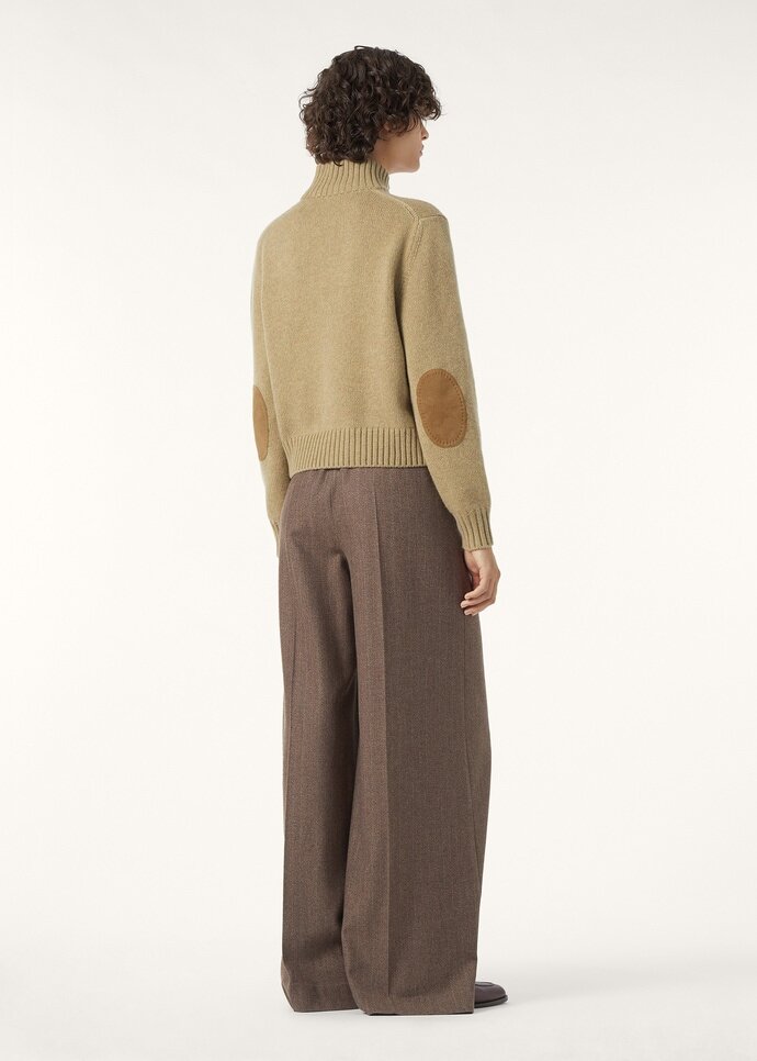 Gathered just once from each infant Hircus goat, Baby Cashmere embodies nature’s fleeting perfection—a cloud-soft whisper of unparalleled luxury. This loose-fitting bomber jacket drapes the body in this special yarn, while the high neck and front button-up create a cozy cocoon. The refined tonal suede detailing takes this piece to a new level of understated glamour.