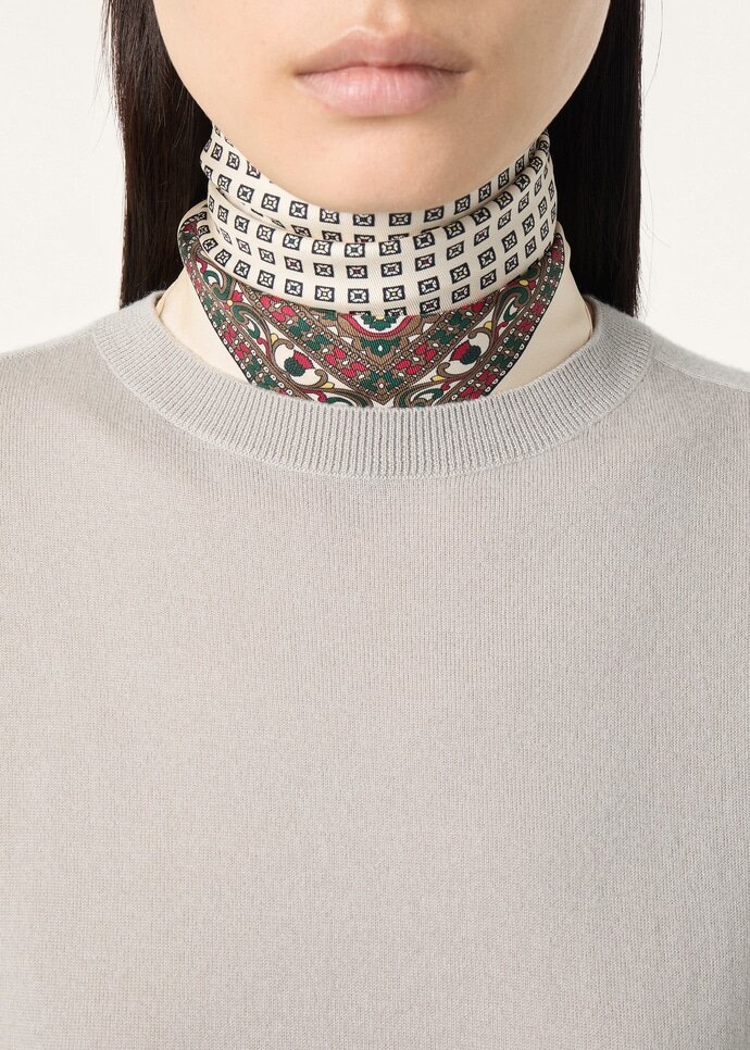 Crewneck made from plain-knit cashmere. This lightweight, versatile style is flowing and comfortable. Featuring three-quarter length sleeves, it is perfect under a jacket in casual looks.