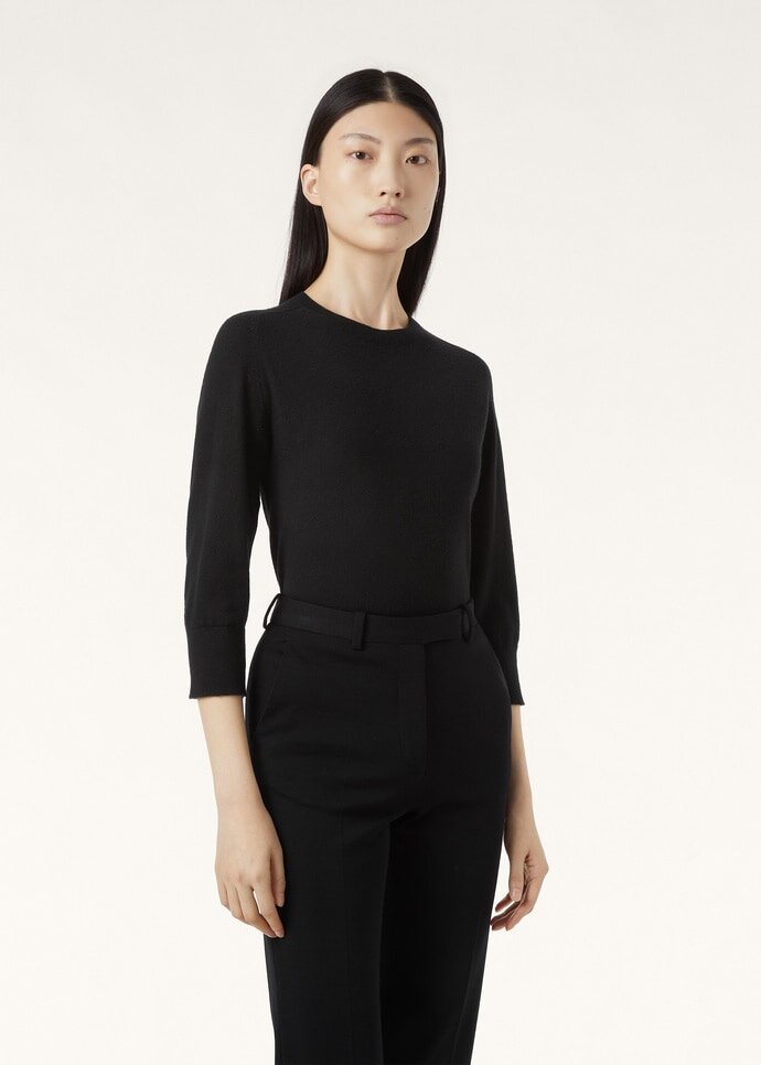 Crewneck made from plain-knit cashmere. This lightweight, versatile style is flowing and comfortable. Featuring three-quarter length sleeves, it is perfect under a jacket in casual looks.