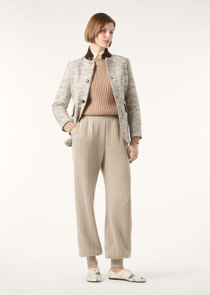 An elegantly textured cable motif runs along the center of the Plane Tree crewneck sweater. It is crafted from sumptuously soft baby cashmere – gathered from the downy underfleece of infant Hircus goats – and dyed with plant-based pigments, revealing a rare mélange of shades. Ribbed edges throughout finish the design with considered structure.