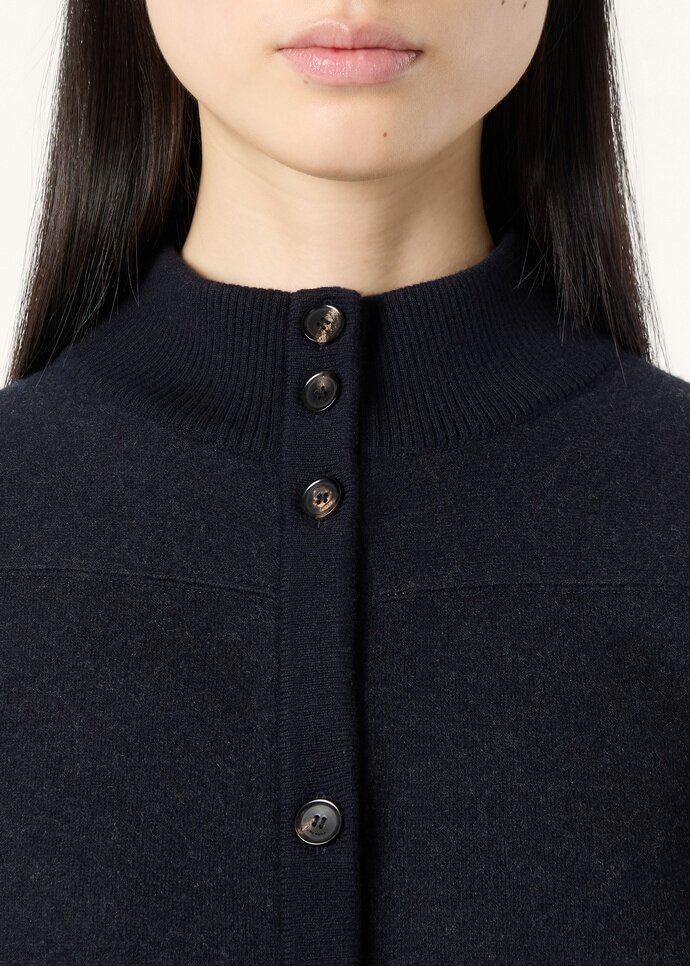 With its loose fit and elevated fabric, the Rio Bodro cardigan embodies refined ease. It is crafted from double-faced Jersey Novalis, a sumptuous cashmere blend with a flowing drape and exceptional warmth. The chest and shoulders are traced with an elegant darted yoke, lending definition to the relaxed design. Tonal cashmere trims and heirloom Sergio horn buttons impart a note of polish.